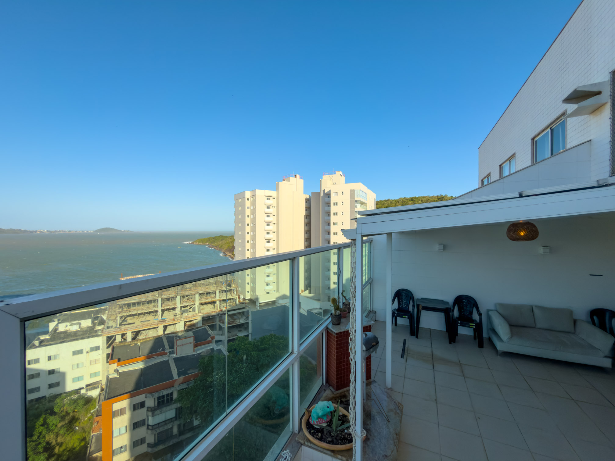 Disfrute de uma estadia incrível nessa Cobertura duplex ✮ Alto padrão ✮ com Vista pro mar e Lazer privativo, há poucos passos da areia e na região mais valorizada de Guarapari: entre as praias do Morro e da Cerca.